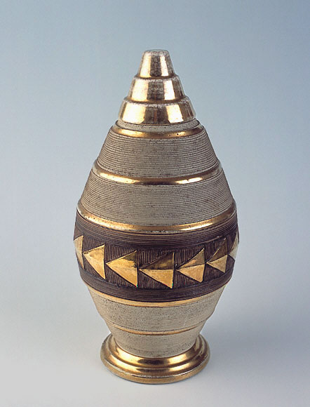California Studio Potter Beatrice Wood, Chalice Form Vase with relief masks