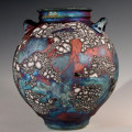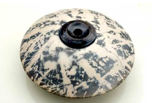 The Naked Raku is a variant of the previous technique. The room gets a polished layer of glaze that does not adhere to the shard, then a layer of enamel. This separates the ceramic enamel after the reduction, leaving an image on the part of its cracks.