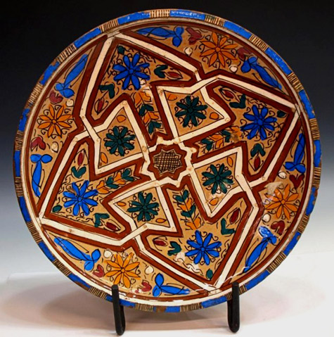 These slip-painted wares constitute a great advance in pottery decoration. Normally the pigment runs in the kiln under the lead glaze, as it was practiced in Mesopotamia in early Abbasid times on splashed wares. By the introduction of a ground slip and slip pigments, potters could control the designs while in the kiln, and thus were able to produce a great variety of surface decorations.