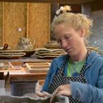 Tania Mallet in pottery studio in Tourettes Sur Loup, South of France